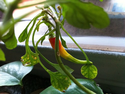 Sono iniziate le celebrazioni per i 150 anni dell’Unità d’Italia… … e la mia pianta di peperoncino si è adeguata.